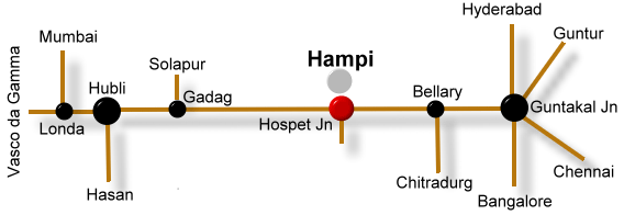 Location : About 360 km from Bangalore / 260 km from Belgaum / 235 km from Bijapur/ 165 km from Hubli / 75 km from Bellari. Hospet is the closest Town.