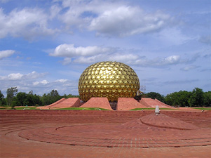 Auroville - or the ‘City of Dawn’ - was conceived as a place of research into the ideal of human unity by the Mother, the spiritual collaborator of Sri Aurobindo. The idea is to build a innovative city where people of goodwill can live together in peace and progressive harmony, above all creeds, all politics and all nationalities. Auroville came into existence in 1968. Its Charter says, “To live in Auroville one must be a willing servitor of the Divine Consciousness”, and describes it as “belonging to nobody in particular, but to humanity as a whole”; as a place “of constant progress”; and as “a bridge between the past and the future.”